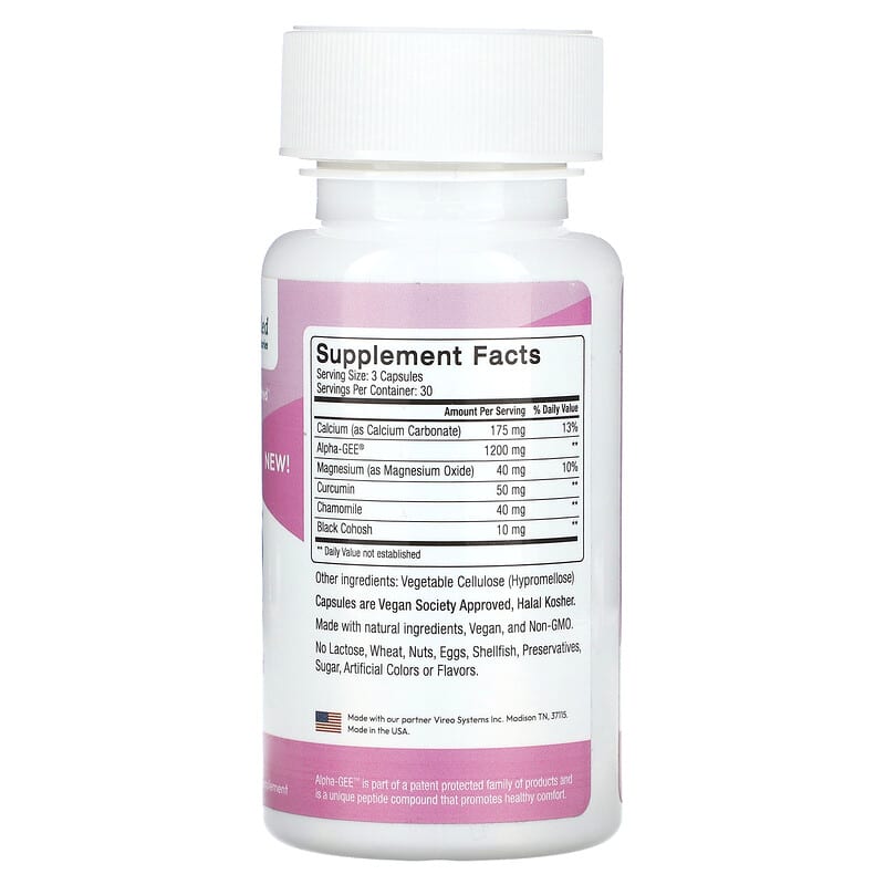 1. Alpha-GEE® (1,200 mg): Đây là thành phần chính có tác dụng giảm viêm, hỗ trợ quá trình phục hồi cơ thể trong thời kỳ kinh nguyệt.