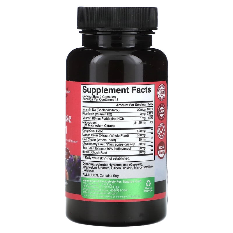 Hỗ trợ giảm triệu chứng mãn kinh, cải thiện sức khỏe phụ nữ với Nature's Craft 30 viên, an toàn và hiệu quả., UPC 850050639299