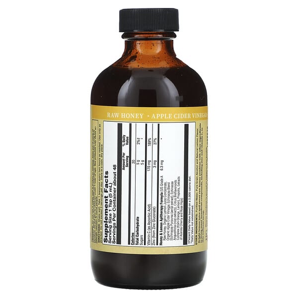 | Honey & Lemon Apitherapy Formula (US Grade A Raw Honey, Organic Lemon Juice Concentrate, Organic Apple Cider Vinegar, Echinacea Blend [Echinacea Purpurea (Aerial Extract), Echinacea Angustifolia (Root Extract)] Citrus Bioflavonoids Complex [From Orange, Lemon] Propolis, Extracts Of Acerola Cherry And Rose Hips) | 6.3 mg | * |