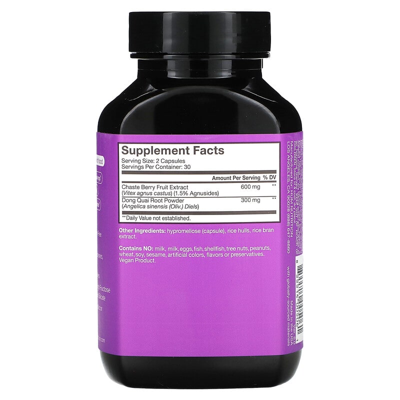 1. Chasteberry Fruit Extract (Vitex agnus castus): Với hàm lượng 600 mg trong mỗi khẩu phần, Chasteberry là một loại thảo mộc nổi tiếng trong việc hỗ trợ sức khỏe nữ giới. Nó giúp cân bằng hormone, giảm cảm giác khó chịu trong kỳ kinh nguyệt, đồng thời làm giảm triệu chứng như đau bụng và tâm trạng thất thường.