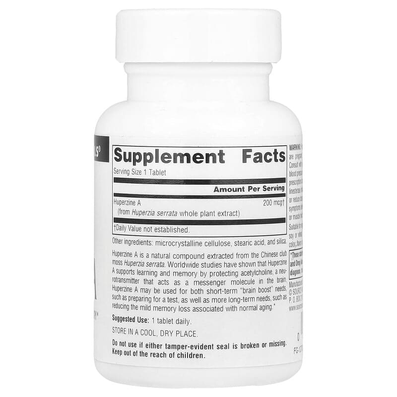 Huperzine A Source Naturals 200 mcg hỗ trợ cải thiện trí nhớ, tăng cường sức khỏe não bộ, 60 viên tiện lợi cho người dùng., UPC 021078019305