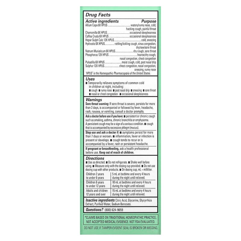 Giới thiệu sản phẩm Hyland’s Kids Cold & Cough Nighttime Ages 2-12 Unflavored 4 fl oz (118 ml)