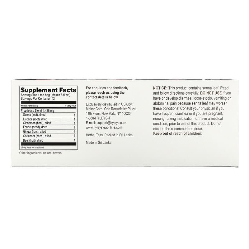 Giới thiệu Trà Hyleys Tea Colon Cleanse Bộ Trà Hỗn Hợp Không Chất Kích Thích 42 Túi Trà Bọc Nhôm 0.05 oz (1.5 g) Mỗi Túi