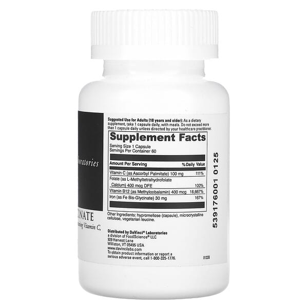 Thông tin sản phẩm DaVinci Laboratories of Vermont, Iron Bis-Glycinate, 60 viên