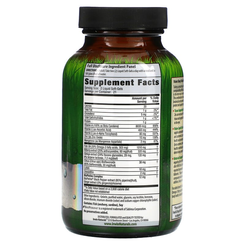 Irwin Naturals Vision Sharp Multi-Nutrient Eye Health là sản phẩm bổ sung dinh dưỡng với mục tiêu hỗ trợ và duy trì chức năng thị lực khỏe mạnh. Sản phẩm giúp bảo vệ và hỗ trợ mô mắt theo thời gian, đặc biệt là khi tuổi tác tăng lên. Công thức độc quyền của sản phẩm bao gồm các vitamin, khoáng chất và chất chống oxy hóa giúp: