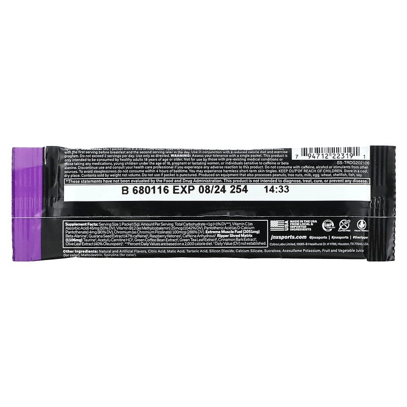 Giới thiệu JNX Sports The Ripper Fat Burner Nho Đen 1 gói 0.18 oz (5 g)