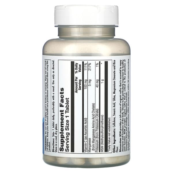 MSM là một dạng sulfur hữu cơ tự nhiên, đóng vai trò thiết yếu trong việc hình thành và duy trì cấu trúc của mô liên kết và sụn khớp. Sản phẩm KAL, MSM, 1.000 mg giúp hỗ trợ chức năng khớp khỏe mạnh, cải thiện độ linh hoạt, giảm thiểu cơn đau và viêm khớp, đồng thời tăng cường sức khỏe tổng thể cho cơ thể. Ngoài ra, MSM còn có khả năng thúc đẩy quá trình phục hồi sau chấn thương và làm giảm triệu chứng của các vấn đề về khớp.
