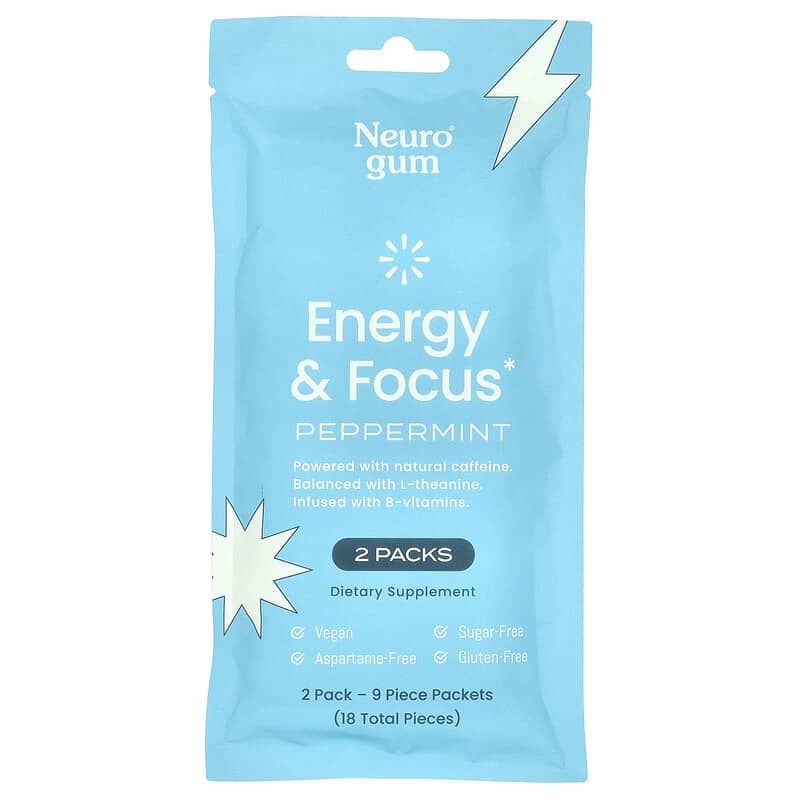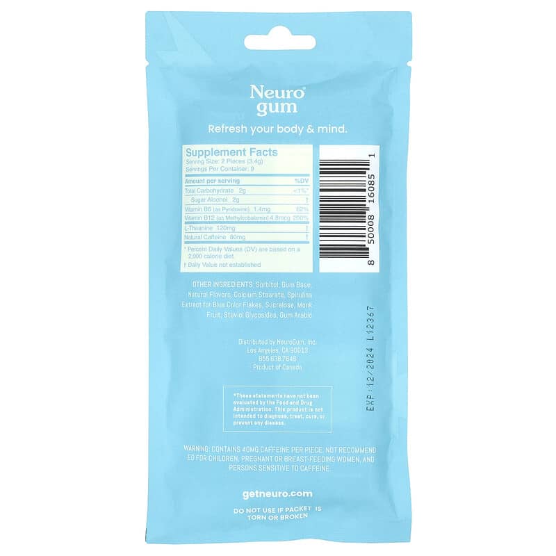 Kẹo cao su NeuroGum bạc hà tăng cường năng lượng và tập trung, gói 9 miếng, tuyệt vời cho sự tỉnh táo và hiệu suất cao., UPC 850008160851