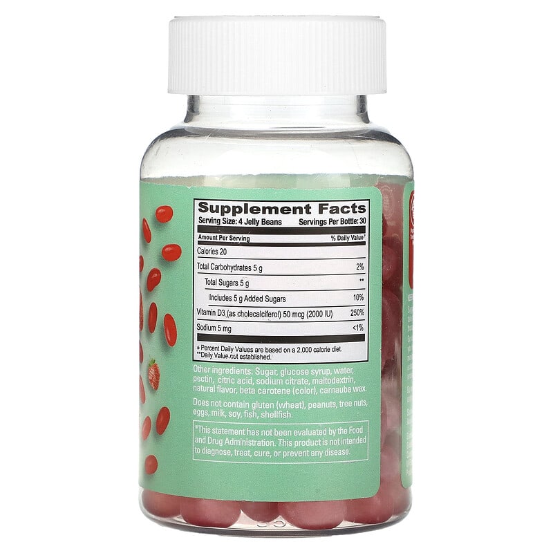Kẹo dẻo Vitamin D3 vị dâu tây Human Beanz 120 viên bổ sung vitamin cho sức khỏe, hỗ trợ xương và miễn dịch., UPC 810048612512