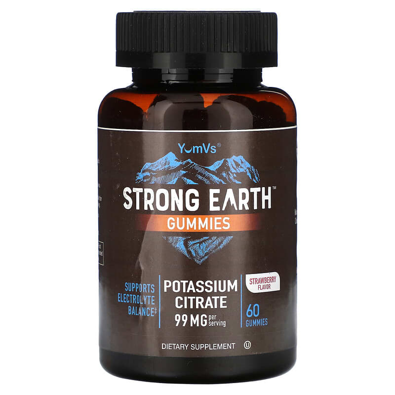 Kẹo dẻo YumVs Strong Earth, Citrate Kali, Dâu, bổ sung 99 mg, 60 viên nhai, hỗ trợ sức khỏe, vị dâu ngon miệng., UPC 810048613588