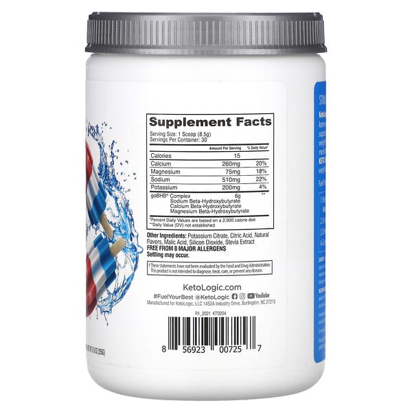 Thông tin sản phẩm KetoLogic, Keto BHB, Patriot Pop, 8,9 oz (255 g)