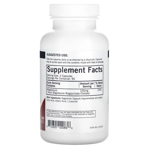 | Magnesium (from Magnesium Bisglycinate Chelate) | 100 mg | 24% |