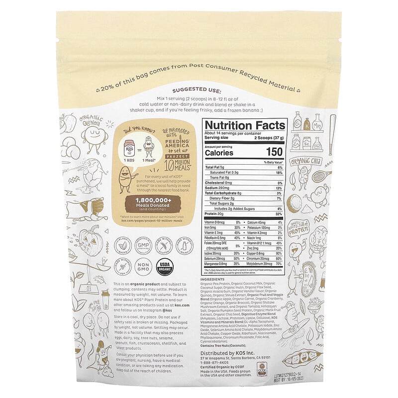 Giới thiệu sản phẩm KOS Organic Plant Protein Vanilla 1.1 lb (518 g)