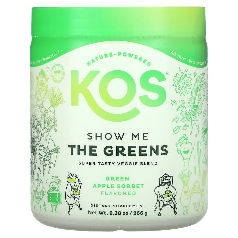 KOS Show Me The Greens Super Tasty Veggie Blend Green Apple Sorbet 9.38 oz cải thiện sức khỏe, hỗn hợp rau xanh thơm ngon vị táo xanh, bổ sung dinh dưỡng hoàn hảo. 850000503373