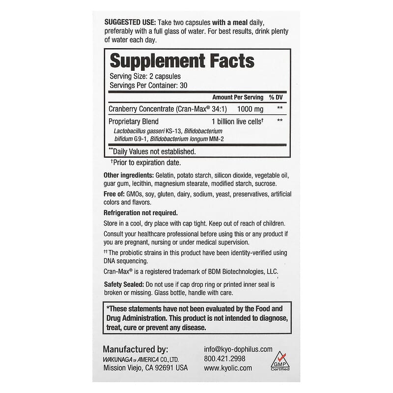 Thành phần của Kyolic Kyo-Dophilus Cran+ Probiotic