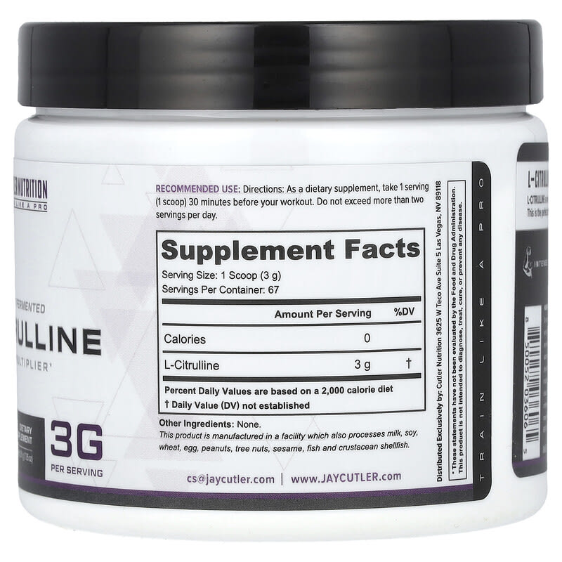 L-Citrulline Cutler Nutrition không vị 200g hỗ trợ sức khỏe tim mạch, tăng cường sức bền và phục hồi cơ bắp hiệu quả., UPC 850052036065