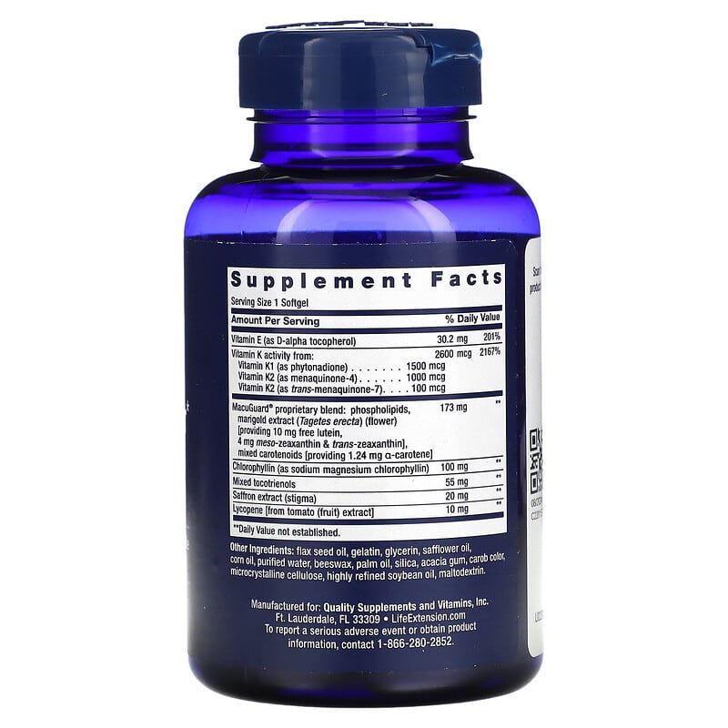 – MacuGuard® blend: 173 mg (chứa lutein, meso-zeaxanthin, trans-zeaxanthin)