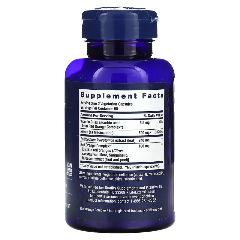 – Red Orange Complex®: 100 mg (chiết xuất từ các loại cam đỏ Sicilian)