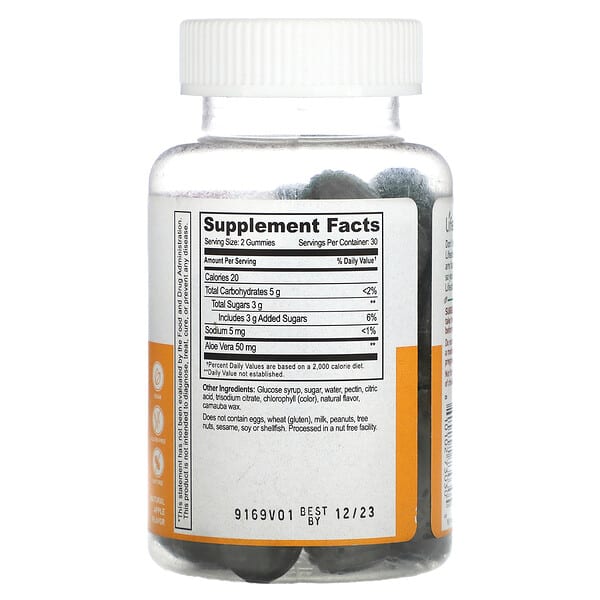 Thông tin sản phẩm Lifeable, Aloe Vera Gummies, Natural Apple, 50 mg, 60 viên nhai (25 mg/viên)