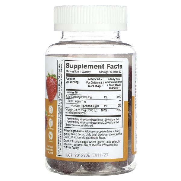 Thông tin sản phẩm Lifeable, Kids Vitamin D3 Gummies, Natural Strawberry, 25 mcg (1.000 IU), 60 viên nhai
