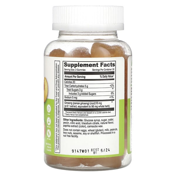 Thông tin sản phẩm Lifeable, Panax Ginseng Gummies, Natural Peach, 60 viên nhai
