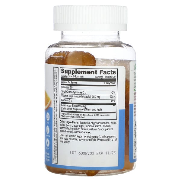 Thông tin sản phẩm Lifeable, Vitamin C + Echinacea Gummies, Sugar Free, Natural Citrus, 250 mg, 60 viên nhai (125 mg/viên)