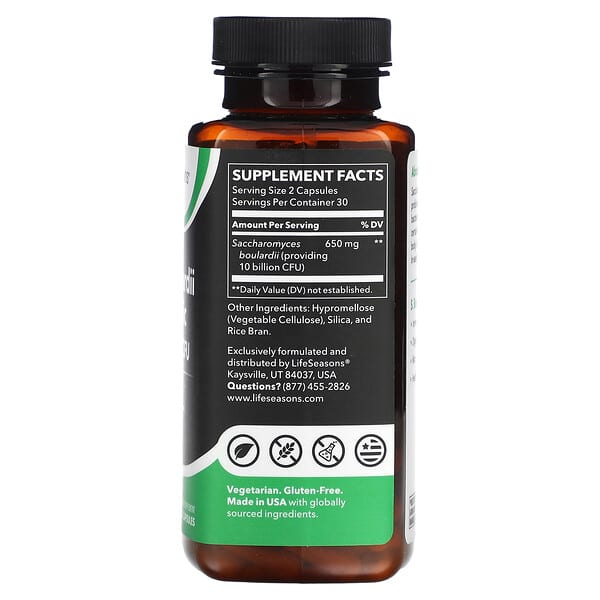 Thông tin sản phẩm LifeSeasons, S, Boulardii Prodiotic, 10 tỷ, 60 viên (5 tỷ CFU/viên)