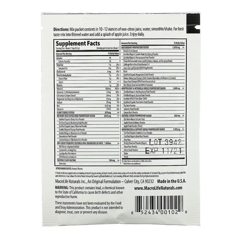 Giới thiệu Macrolife Naturals Miracle Reds Superfood Goji Pomegranate Acai Mangosteen 0.3 oz (9.5 g) siêu thực phẩm từ Macrolife Naturals
