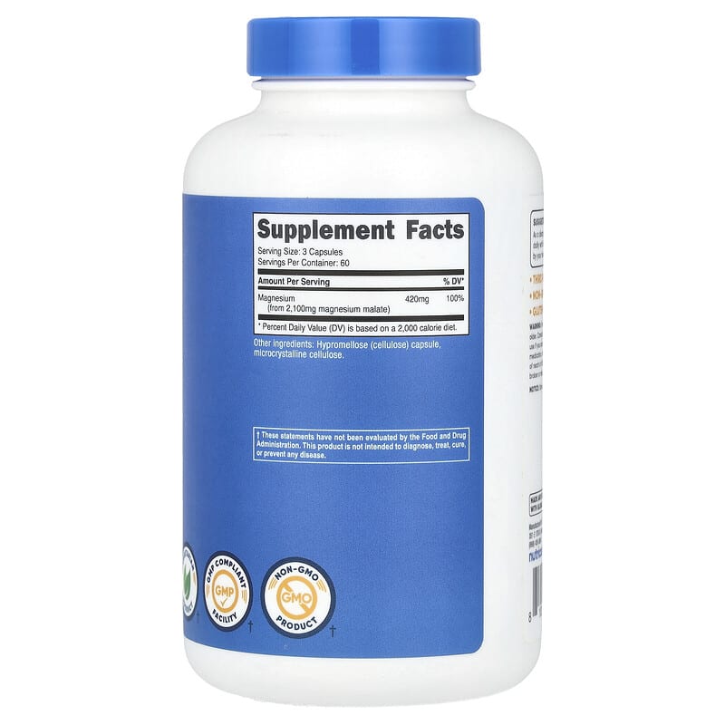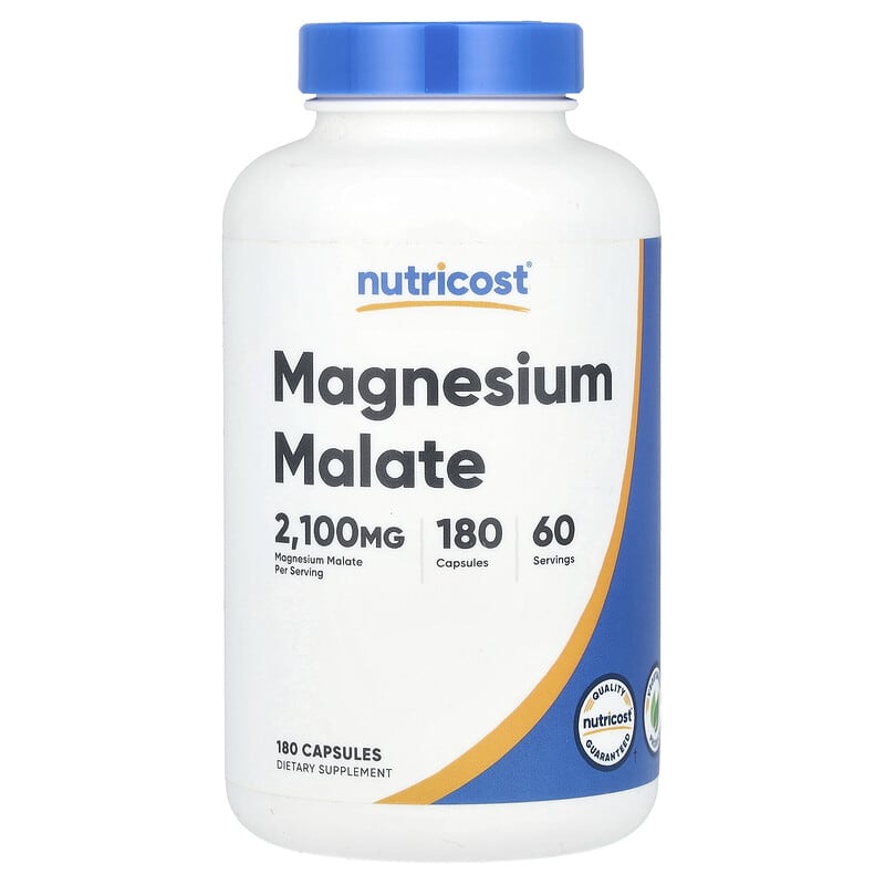 Viên uống Magie Malate Nutricost 2100 mg hỗ trợ sức khỏe, giảm căng thẳng, 180 viên tiện lợi mỗi ngày., UPC 810014672960