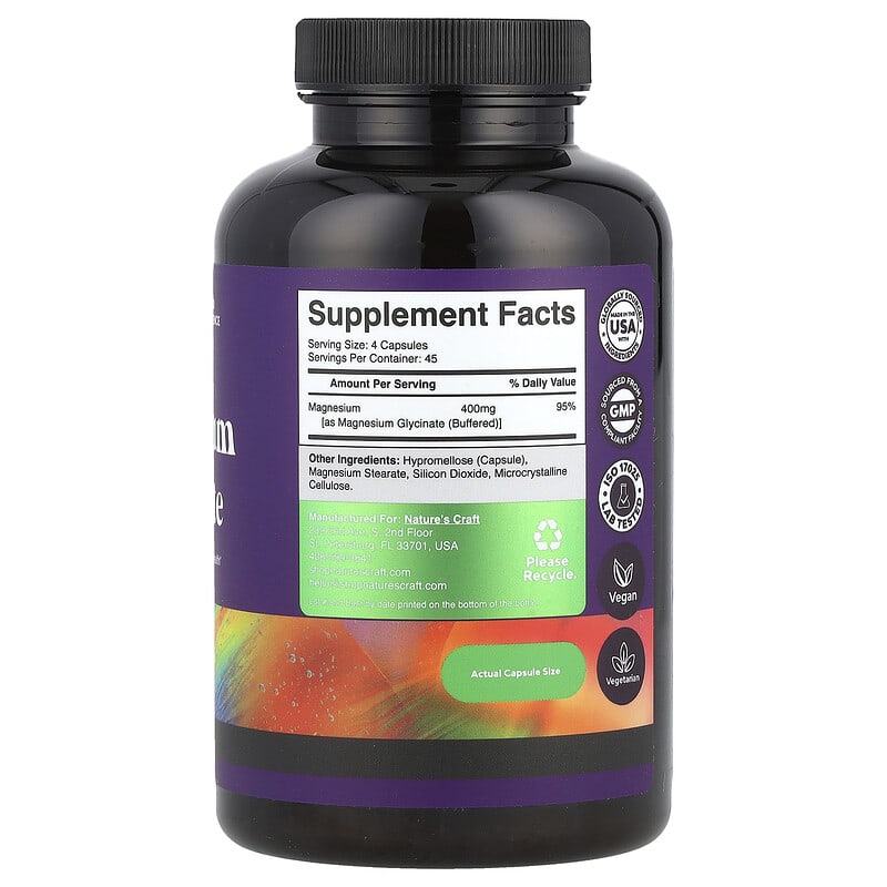 Magnesium Glycinate Nature's Craft 180 viên hỗ trợ sức khỏe, giảm căng thẳng, cải thiện giấc ngủ, tăng cường sức đề kháng., UPC 850034386348