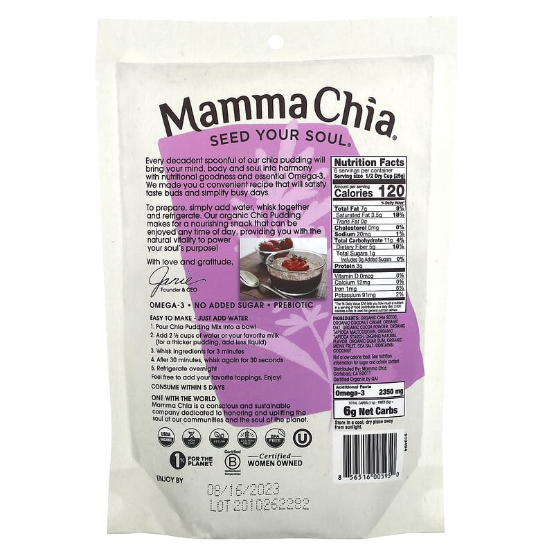 Giới thiệu sản phẩm Mamma Chia Chia Pudding Mix Dark Chocolate 5.3 oz (150 g)