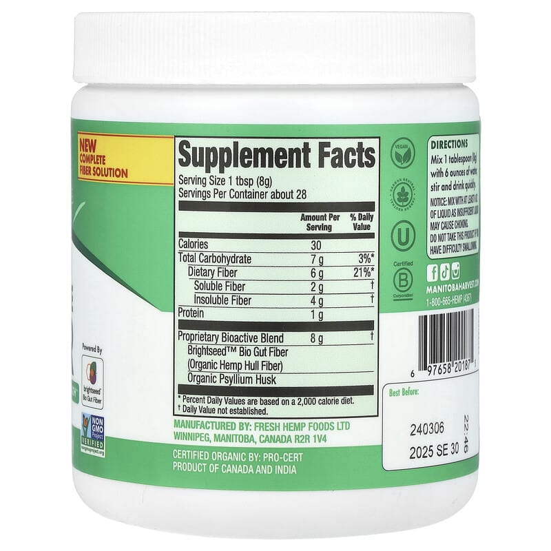 Bột xơ hữu cơ Manitoba Harvest, Bioactive Fiber, 227g, bổ sung chất xơ tự nhiên, hỗ trợ tiêu hóa, sức khỏe tim mạch., UPC 697658201875