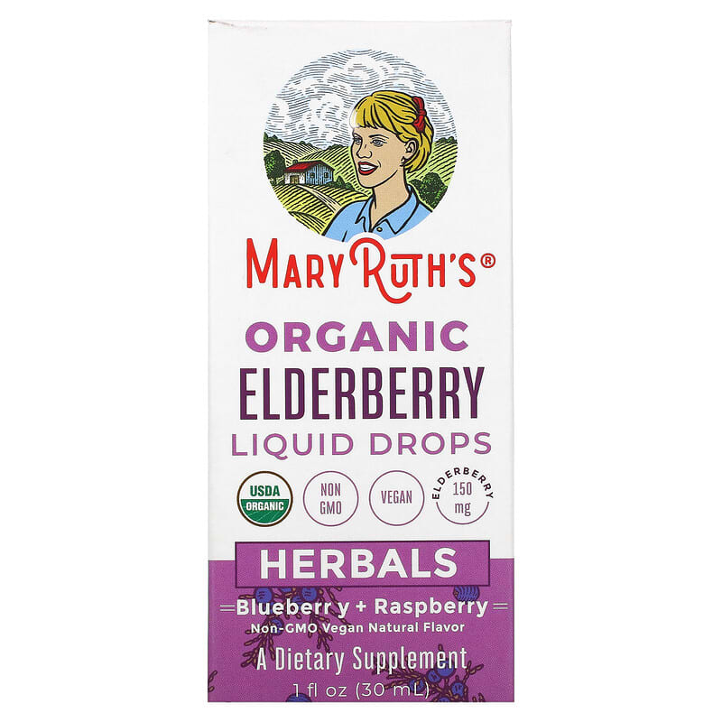 Giới thiệu sản phẩm MaryRuth Organics Organic Elderberry Liquid Drops Herbals Blueberry + Raspberry 1 fl oz (30 ml)