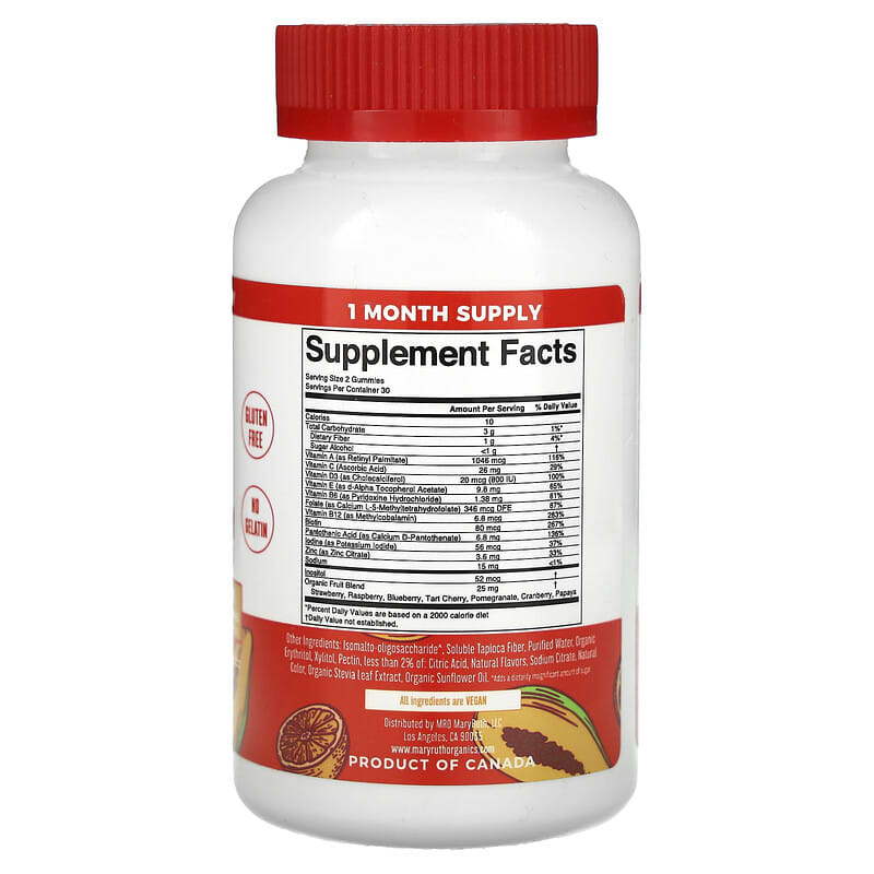 MaryRuth’s Men’s Multivitamin Gummies được chiết xuất từ các thành phần tự nhiên, bao gồm:
