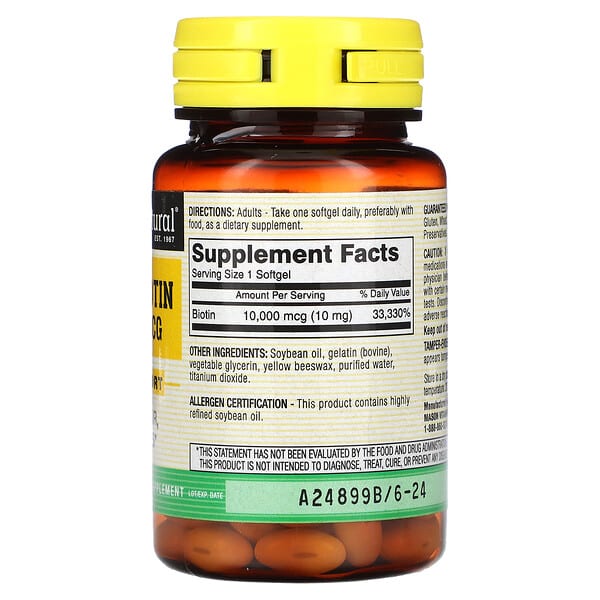 Thông tin sản phẩm Mason Natural, Mega Biotin, 10.000 mcg, 50 viên