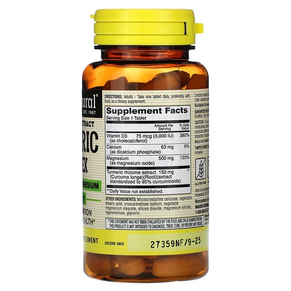 Thông tin sản phẩm Mason Natural, Standardized Extract, Turmeric Complex with Vitamin D3 & Magnesium, 60 viên