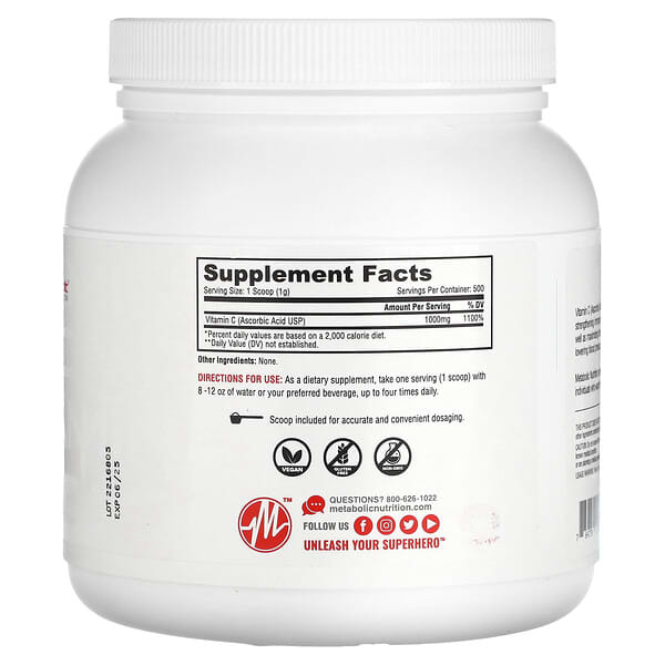 Thông tin sản phẩm Metabolic Nutrition, Vitamin-C, không mùi vị, 17,64 oz (500 g)