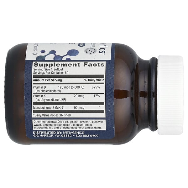 Vitamin D3 5000 + K Metagenics, hỗ trợ sức khỏe xương và miễn dịch, sản phẩm chính hãng nhập khẩu từ Mỹ, 60 viên., UPC: 755571950062