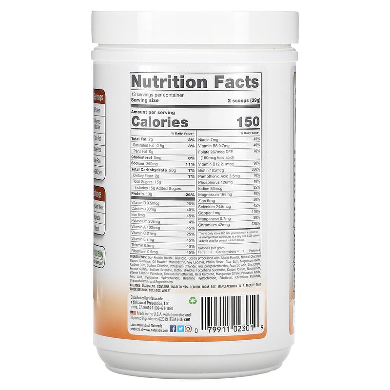 Naturade Total Soy Meal Replacement Bavarian Chocolate 17.88 oz, hỗ trợ giảm cân, bổ sung dinh dưỡng, hương vị socola hảo hạng, dễ pha chế 079911023019