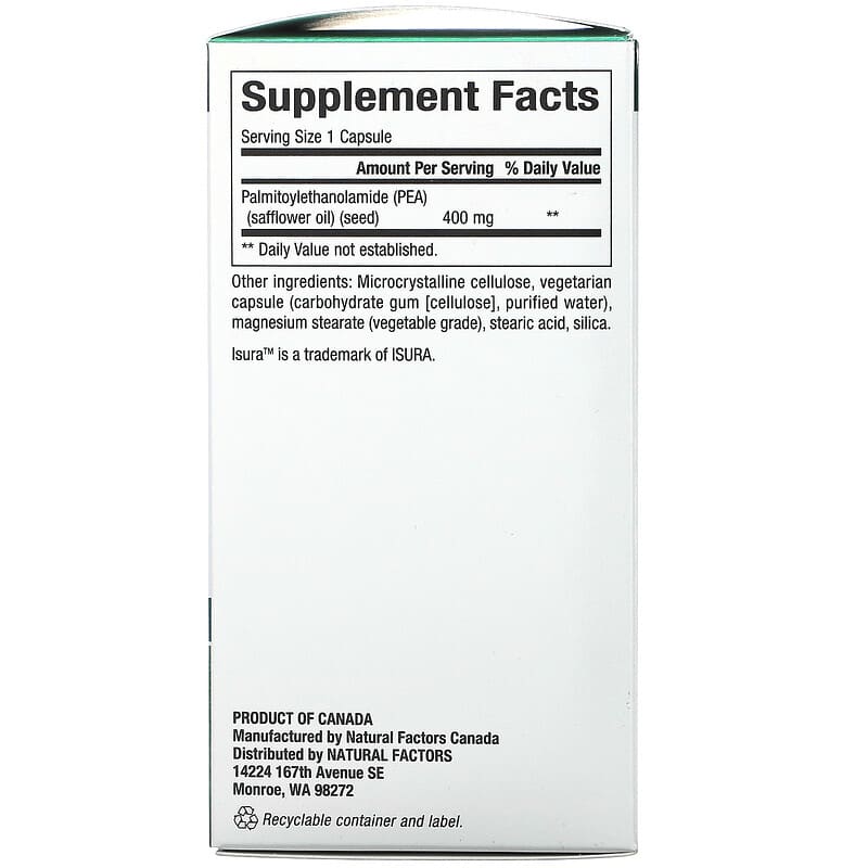 Natural Factors PEA400 90 viên nang chay hỗ trợ giảm đau kháng viêm từ chiết xuất tự nhiên cải thiện sức khỏe không chứa chất phụ gia 068958027005