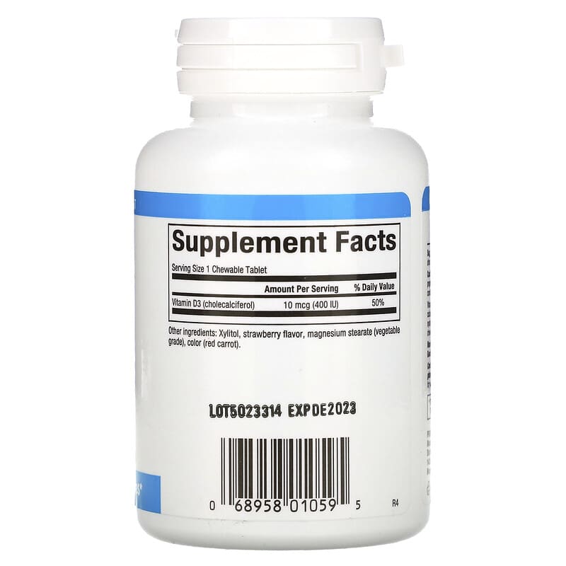Vitamin D3 cho trẻ em vị dâu 10 mcg 100 viên nhai Natural Factors hỗ trợ xương chắc khỏe tăng cường miễn dịch hấp thụ tốt dễ sử dụng 068958010595
