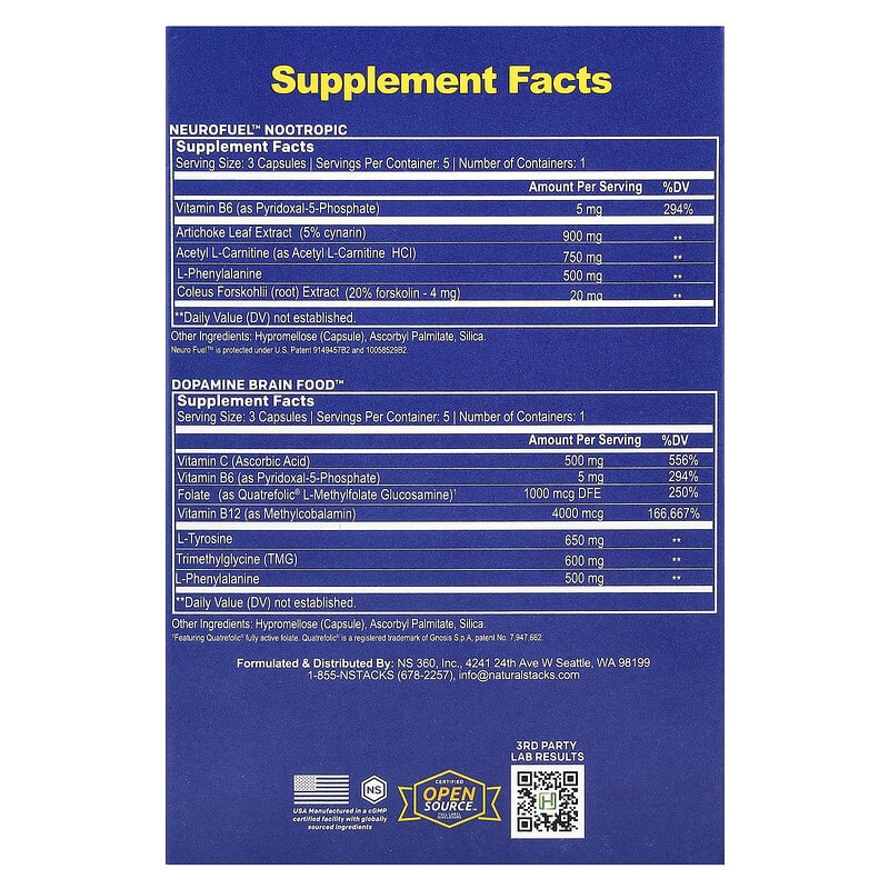 Trong cuộc sống hiện đại, nhu cầu tập trung và cải thiện trí nhớ ngày càng trở nên cần thiết hơn bao giờ hết. Sản phẩm Natural Stacks Focus Stack 2 Bottles 15 viên chay đến từ hãng Natural Stacks là một giải pháp tuyệt vời cho những ai đang tìm kiếm sự hỗ trợ trong việc nâng cao khả năng tập trung và cải thiện chức năng não bộ. Với hai công thức synergistic độc đáo, Neurofuel™ và Dopamine Brain Food™, sản phẩm này mang lại nhiều lợi ích cho sức khỏe tâm thần.