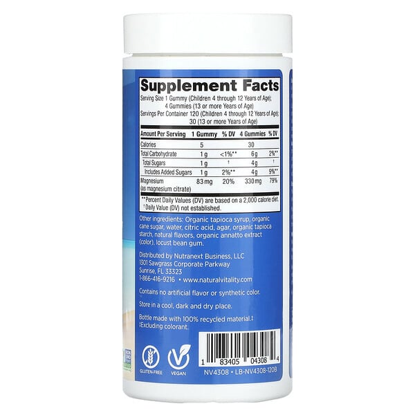 Thông tin sản phẩm Natural Vitality, CALM, Magnesium Supplement, Orange, 120 viên nhai