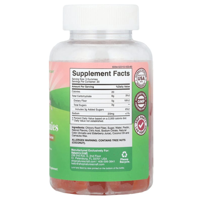 Nature’s Craft Kids Fiber Gummies chứa các thành phần tự nhiên, an toàn cho trẻ em, bao gồm: