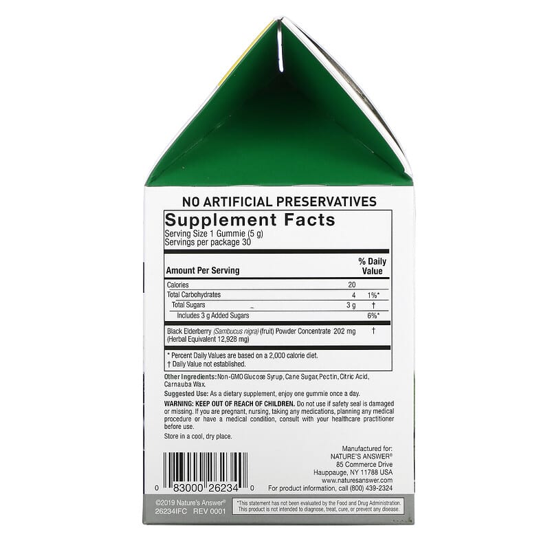 Nature’s Answer Sambucus Mega Gummies 7X Strength Black Elderberry bao gồm: