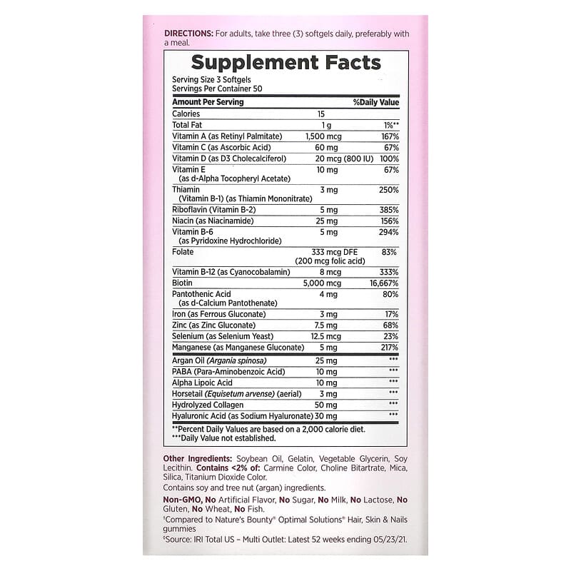 Giới thiệu Viên uống Nature’s Bounty Optimal Solutions Extra Strength Hair Skin & Nails 150 viên mềm giải phóng nhanh hỗ trợ tóc, da & móng chắc khỏe.