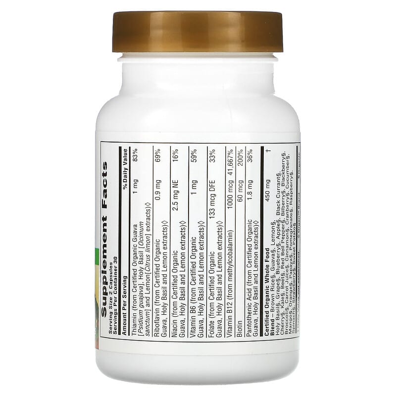 – Chiết xuất từ thực phẩm hữu cơ: Sản phẩm kết hợp chiết xuất từ guava, holy basil và chanh, cung cấp các co-factors tự nhiên giúp tăng cường sự hấp thụ và hiệu quả của vitamin B12.