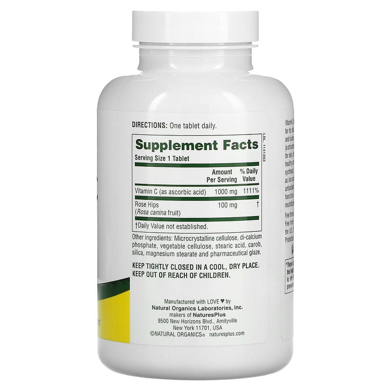 Giới thiệu về sản phẩm NaturesPlus High Potency Vitamin C With Rosehips 1000 mg 180 Tablets