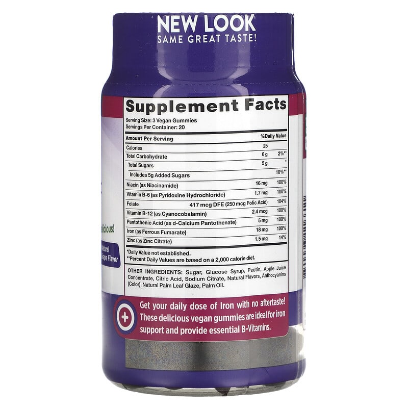 Giới thiệu Viên uống bổ sung sắt tự nhiên kèm B-Vitamin & kẽm hương nho 60 viên gummies thuần chay Nature’s Truth