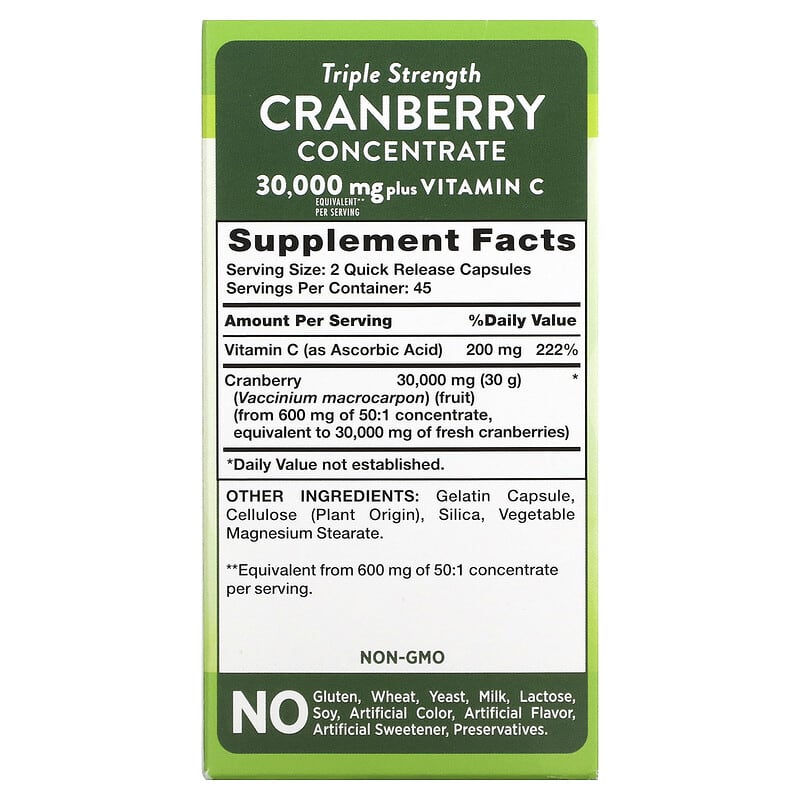 Nature’s Truth Triple Strength Cranberry Concentrate Plus Vitamin C được chiết xuất từ trái nam việt quất (cranberry) với nồng độ cao, giúp cung cấp một lượng lớn proanthocyanidins (PACs) – các chất chống oxy hóa mạnh mẽ có lợi cho sức khỏe. Sản phẩm này hỗ trợ: